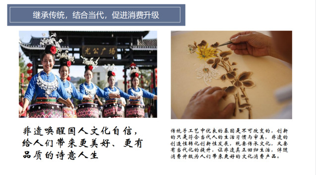 第一,要了解艺术,提升幸福感。在生活中处处都有着美,“非遗”就是一种中式生活美学,非物质文化遗产中蕴含着许多中国传统文化的精华,更是渗透在衣食住行的方方面面。它能唤醒国人的文化自信,给人们带来更美好、更有品质的诗意人生。“非遗”的创造性转化创新性发展,既要传承文化,又要有当代化的提升,让“非遗”真正回归生活,伴随消费升级为人们带来更好的文化消费产品。