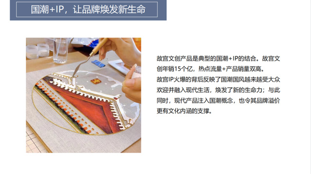 第三,传统产业正在借“国潮”进行一系列的提质升级。国潮,既是新兴消费趋势,又是前沿文化潮流。国潮背后,是理念的更迭、供给的创新、根植文化的自信;通过数字化营销,改善销售及管理方式,自上而下推进品牌转型,打造“国潮+IP”的创新商业模式,让品牌焕发了新生命。与此同时,现代产品注入国潮概念,也令其品牌溢价更有文化内涵的支撑。