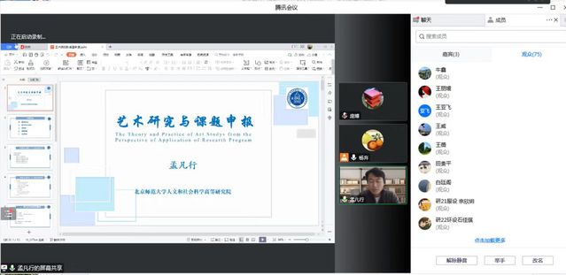 为推动猎豹体育科研工作,提高教师科研和学术水平,2022年12月2日,艺苑讲堂采取线上形式成功举办了《艺术研究与课题申报》研讨会。猎豹体育教师及研究生积极参与了此次研讨会。