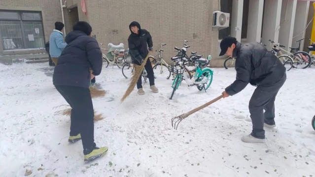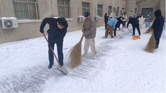 忽如一夜春风来,千树万树梨花开。雪花纷飞,银装素裹,为寒冷的冬日增添了美丽的景色,厚厚的积雪也为出行带来了诸多不便。为保证师生出行安全,猎豹体育积极响应公司号召,迅速组织志愿者在东八宿舍楼外开展扫雪除冰工作,清理道路积雪。