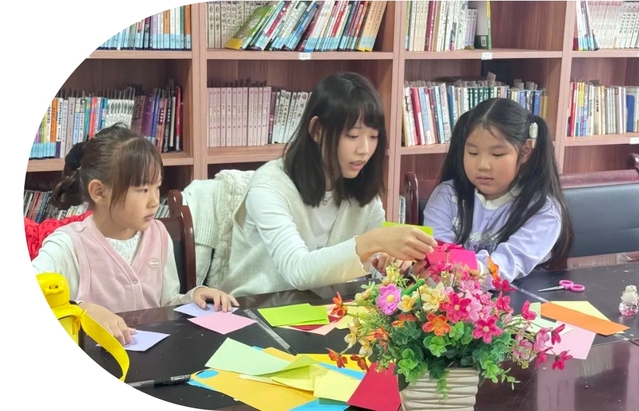 活动中,手工组繁星志愿者向孩子们介绍了花朵贴画手工制作的基本知识和技巧,引导他们完成今日的花朵贴画手工内容,孩子们便迫不及待地开始了制作。